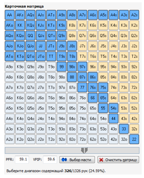 Еще существует отдельный чарт начальных сочетаний для поздних этапов с разыгрываемым спектром от 25% до 30%: