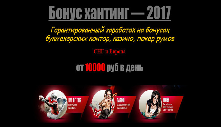 Понятие bonus hunting или бонус хантинг в покере дословно означает «охота за бонусами». Преимущественно каждый крупный покер-рум предоставляет собственным посетителям различные бонусы. Как правило, в большей степени это бонус за пополнение депозита и в меньшей – бонус за регистрацию.