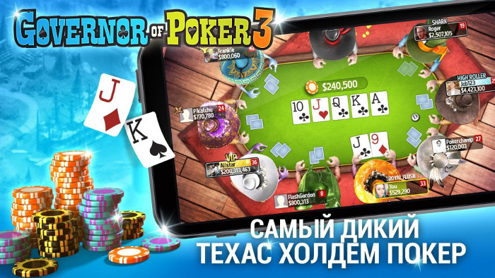 Сегодня все желающие могут бесплатно играть онлайн в Governor of Poker 3 на русском языке, причем не только на персональном компьютере/ноутбуке, но и мобильных/планшетных устройствах под управление Android и IPhone.