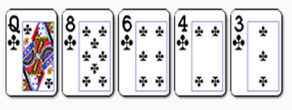 Флеш представляет собой среднюю по старшинству выигрышную руку, состоящую из 5 одномастных, но идущих не по порядку игральных карт. К примеру, пиковые Туз, Дама, Десятка, Пятерка и Тройка. При этом Flush побеждает следующие комбинации в покере: High Hand, One Pairs, Two Pairs, Three of a King, Straight, но проигрывает: Full House, Four of a King, Straight Flush и Royal Flush.