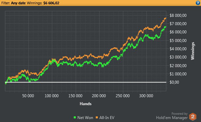 Ошибочно полагать, что отыграв несколько сотен карманных карт с определенным противником, у вас получится точно понять его манеру игры – это ничтожно мало. Для эффективного противостояния необходимо сыграть как минимум 10.000 рук и более.
