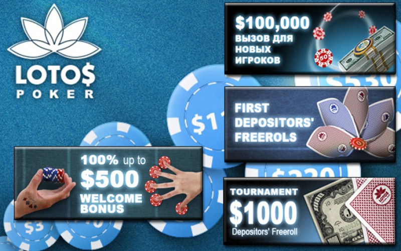Играть онлайн в покер на LotosPoker чрезвычайно выгодно и очень просто. Каждому новому зарегистрированному игроку положен 200% бонус на первый депозит до $2000 (при пополнении игрового счета от $500), а для постоянных пользователей гемблинг ресурс предлагает постоянные щедрые бонусы и организовывает увлекательные акции.