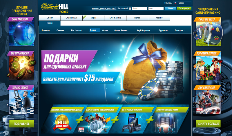 Бонусы и финансовые транзакции на Вильям Хилл Покер ком