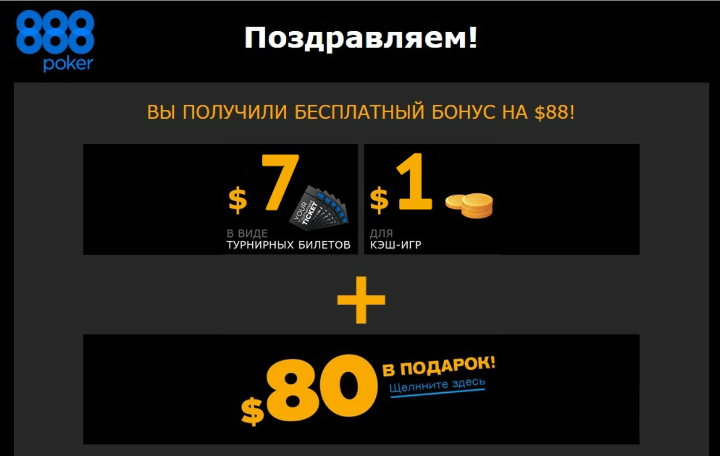 Если вы не хотите вкладывать деньги в покер, попробуйте в него поиграть на чужие средства. При этом вы можете выбрать ту возможность такой игры, которая вам больше подходит. Бездеп – невероятно, но можно просто получить деньги на счет в покер-руме, зарегистрировавшись в нем. И такую возможность предоставляет комната, которая является второй по популярности в мире, а именно – 888Poker. В этой комнате можно стать обладателем 88$, ничего не вкладывая.