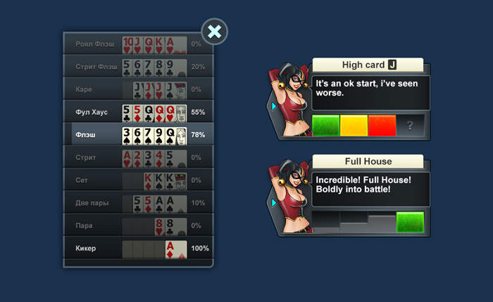 Оффлайн режим предусматривает множество настроек игрового процесса, среди которых: скорость, сложность, число противников, размеры лимитов и прочие. Следовательно, Покер Арена смогла в себе реализовать все преимущества социального покера, причем в нескольких версиях и дисциплинах.