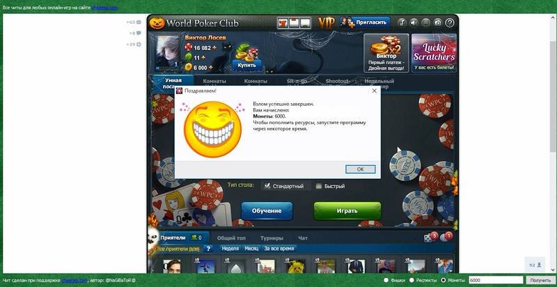 Стать обладателем заветного миллиарда (пускай даже электронного) хочется прямо тут и в эту секунду. А имея на руках начальный капитал в одну тысячу фишек, эта цель представляется фактически недостижимой. Значит, накрутка фишек в World Poker Club выступает в качестве чуть ли не единственной реалистичной возможностью моментально обогатиться.