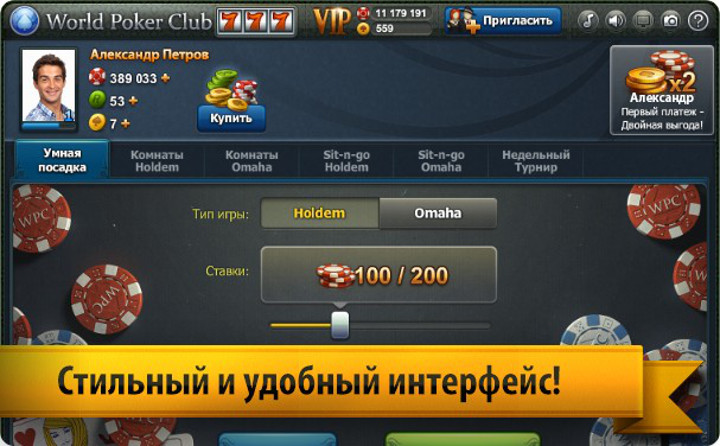 В свою очередь, эти монеты являются уже основной валютой покер-рума, отворяющие виртуальные створки к VIP-турнирам. Чтобы купить монеты World Poker Club, нужно вносить реальные деньги. Сразу после регистрации на ваш депозит поступает 1000 условных фишек.