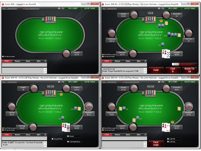 Многие профессиональные покеристы прибегают к Zoom покеру для отыгрывания приветственных или бонусов на депозит. Этот выбор можно объяснит тем, что тут играя лишь за одним кэш-столом, имеет место существенное увеличение числа раздач. Соответственно, и повышение генерирования рейка.